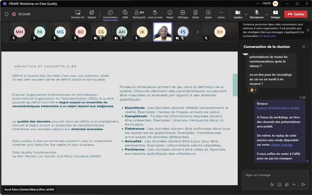 Le 23 août 2024, nous avons eu le plaisir de lancer la première journée du workshop de la FRIARE sur la qualité des données, un événement organisé en ligne qui a rassemblé des spécialistes renommés du domaine.